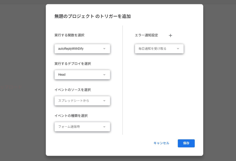 「フォームが送信されたら、このプログラムを動かしてね」というスイッチを入れます。