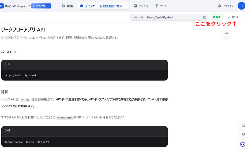 // 1. メモしたDifyのAPIキーをここに貼り付けます