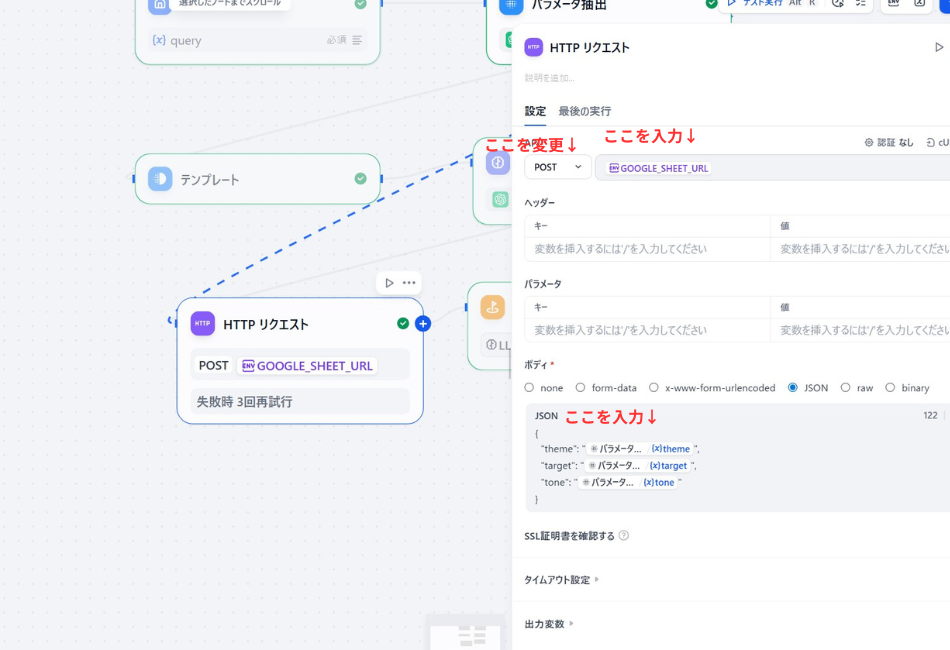 【つなぎ方のイメージ】 LLMHTTPリクエスト出力