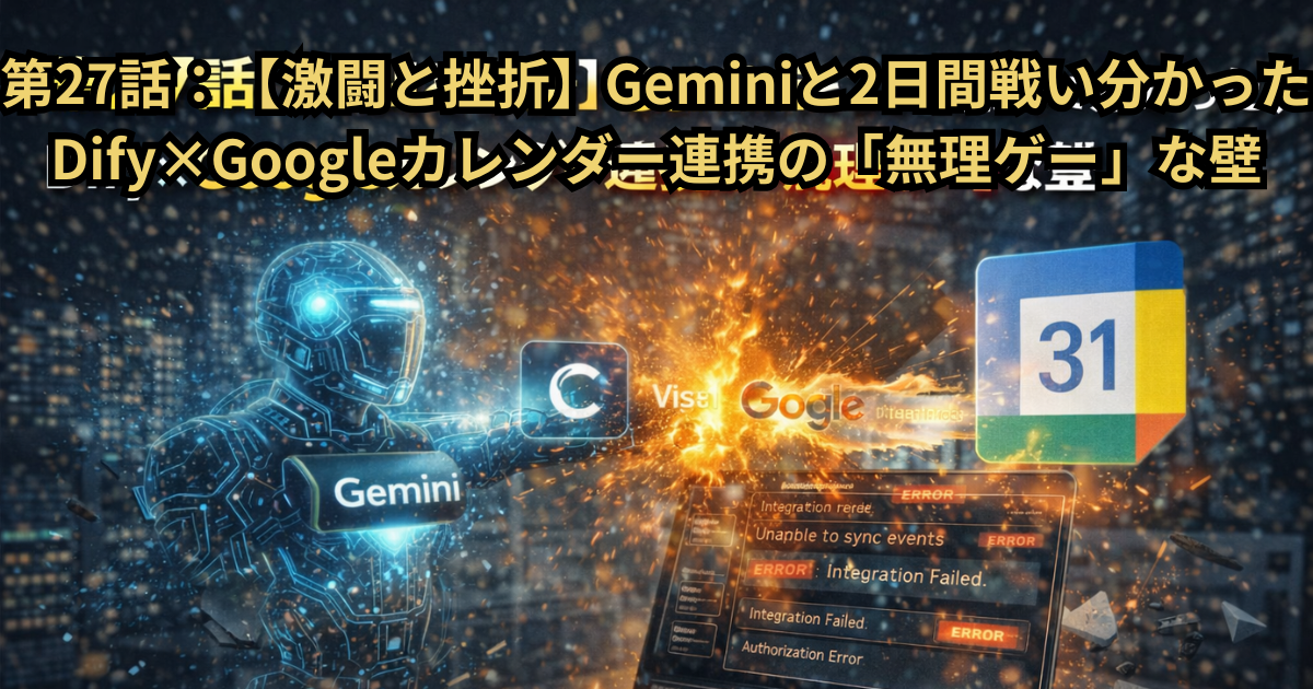 皆さん、こんにちは。 前回、Googleカレンダーとの連携に挑み、エラーの嵐に揉まれて**「無残にも敗北」**した私ですが……。