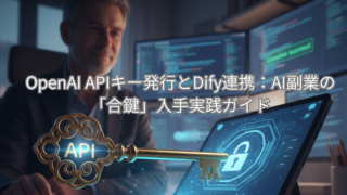 40代未経験でも迷わない!AI副業に必須のOpenAI APIキー発行とDify連携手順を、全ステップ画像付きで徹底解説します。英語サイトでの登録、クレジットカード設定、料金チャージの不安を解消し、すぐにアプリ開発を始めましょう。
